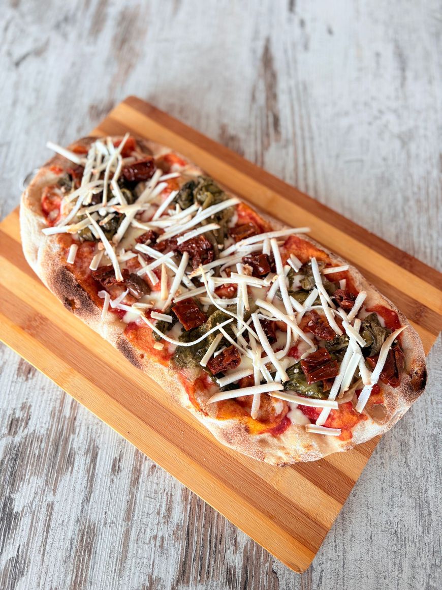 Pizze in teglia, alte, morbide e leggere con farine semintegrali, italiane e macinate a pietra.