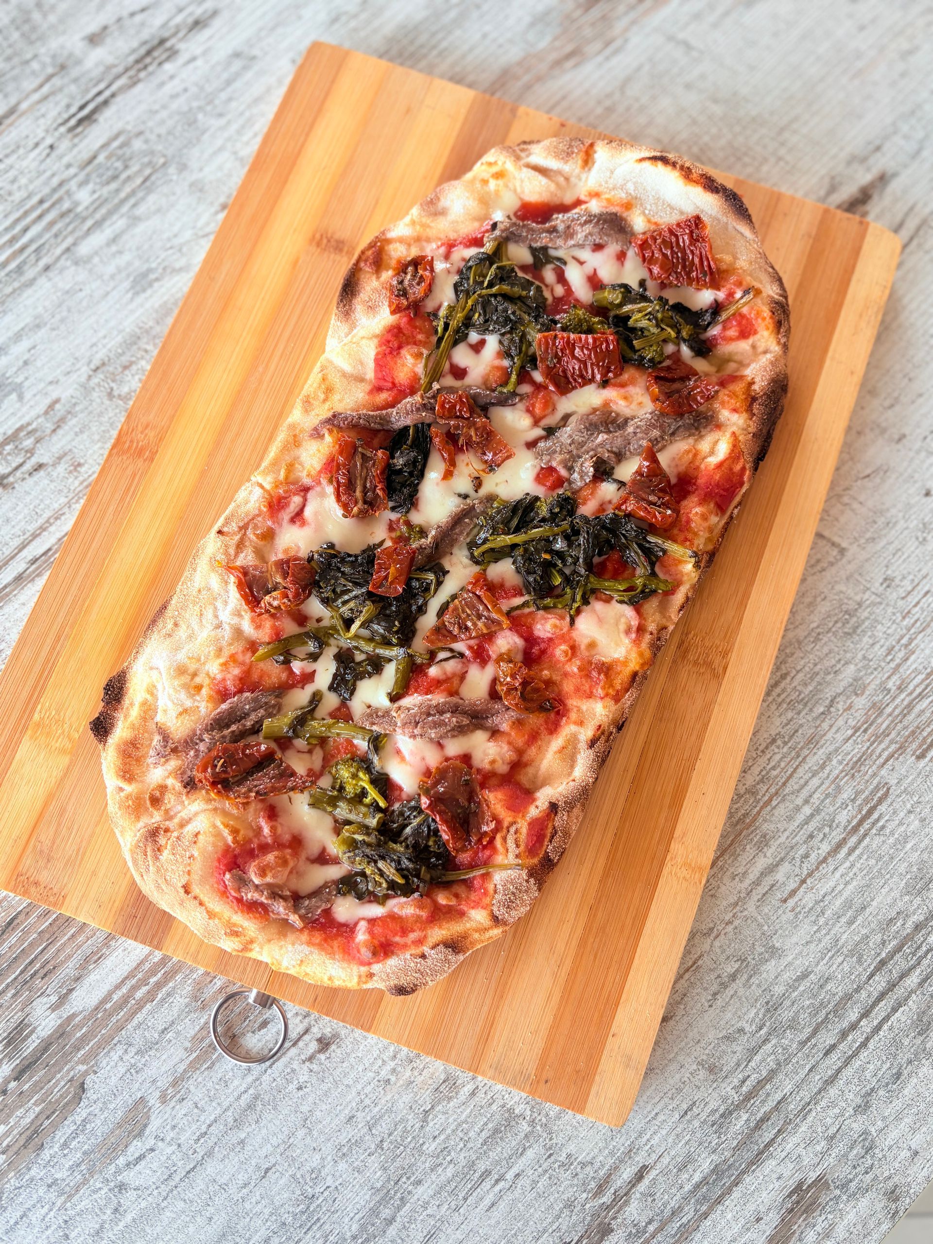 Pomodoro, mozzarella, friarielli, acciughe, pomodorini secchi .